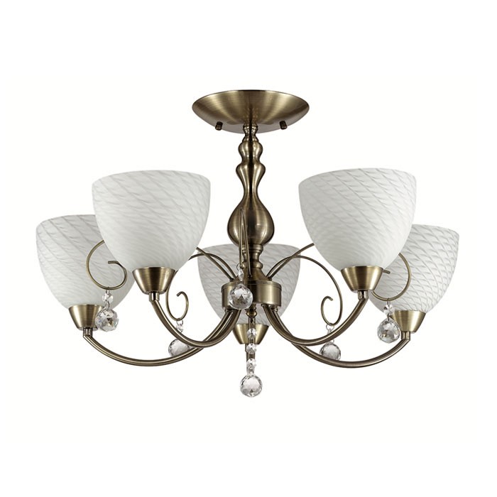 Потолочная люстра 3090/5 серии Mina оформлена в стиле модерн. Люстра состоит из белых стеклянных плафонов и арматуры бронзового цвета, украшенной подвесками из хрусталя. Данная модель обладает особым сдерданным лоском, который никого не оставит равнодушным. Необходимо использовать лампы с цоколем E27. Мощность 5x60W позволяет освещать территорию площадью до 15 кв. м ровным, приятным светом.