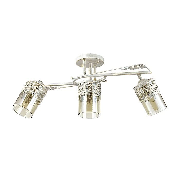 Потолочная люстра 3096/3C серии Mirela оформлена в стиле прованс. Люстра состоит из прозрачных стеклянных поворотных плафонов с кружевным металлическим декором и арматуры мягкого белого с золотой патиной цвета, украшенной резным металлическим элементом. Нежная, изящная, воздушная модель несомненно придется по душе абсолютно каждому. Необходимо использовать лампы с цоколем E14. Мощность 3x40W позволяет освещать территорию площадью до 6 кв. м ровным, приятным светом.