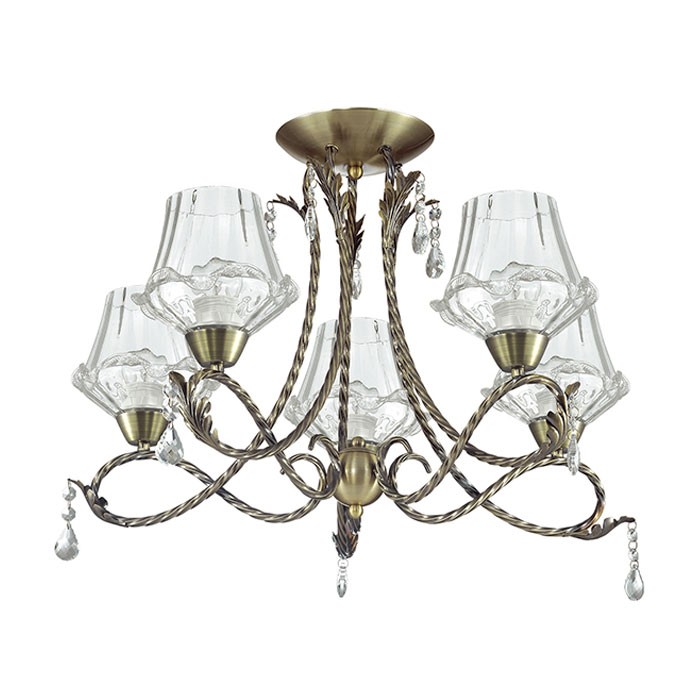 Потолочная люстра 3134/5C серии Monga оформлена в стиле арт-деко. Люстра состоит из прозрачных стеклянных плафонов оригинальной формы и элегантной арматуры бронзового цвета, украшенной хрустальными подвесками. Данная модель станет замечательным украшением любой комнаты. Необходимо использовать лампы с цоколем E27. Мощность 5x60W позволяет освещать территорию площадью до 15 кв. м ровным, приятным светом.
