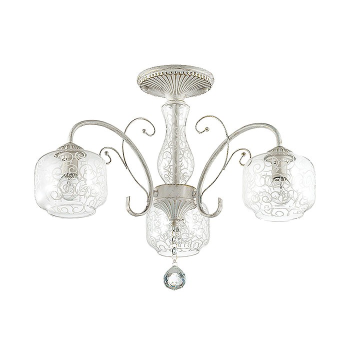 Потолочная люстра 3238/3C серии Nanni оформлена в стиле прованс. Люстра состоит из воздушных плафонов, изготовленных из стекла с вензельным рисунком и классической арматуры белого с золотой патиной цвета, украшенной стеклянным декоративным элементом с рисунком, перекликающимся с плафонами и хрустальными подвесками. Данная модель настолько нежная и воздушная, что подарит Вам ощущение светлой легкости. Необходимо использовать лампочки с цоколем E14. Мощность 3x60W позволяет освещать территорию площадью до 9 кв. м ровным, приятным светом.