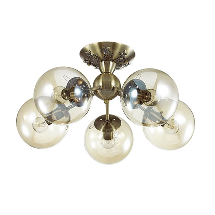 Потолочная люстра 3059/5C серии Palla оформлена в современном стиле. Люстра состоит из прозрачных плафонов из стекла в форме шара и бронзовой арматуры с металлическим декором. Данная модель за счет формы плафонов визуально увеличит объем Вашей комнаты. Необходимо использовать лампы с цоколем E14. Мощность 5x40W позволяет освещать территорию площадью до 10 кв. м ровным, приятным светом.