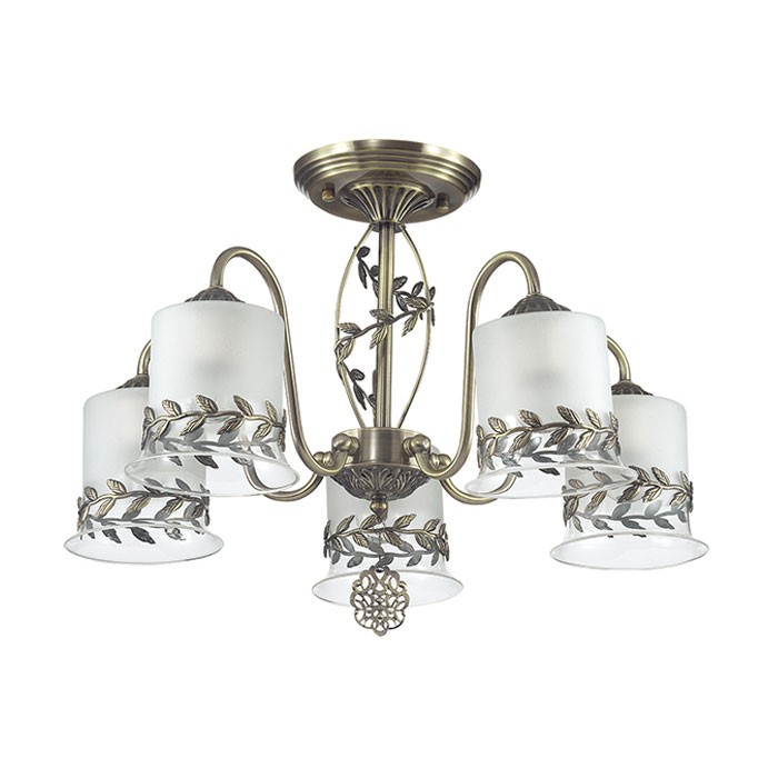 Потолочная люстра 3283/5C серии Paolina оформлена в стиле модерн. Люстра состоит из стеклянных плафонов с металлическим окаймлением в виде оливковой ветки, что выгодно перекликается с похожим декором на арматуре бронзового цвета. Данная модель перенесет вас в теплую, улыбчивую и ласковую Грецию. Необходимо использовать лампы с цоколем E27. Мощность 5x60W позволяет освещать территорию площадью до 15 кв. м ровным, приятным светом.