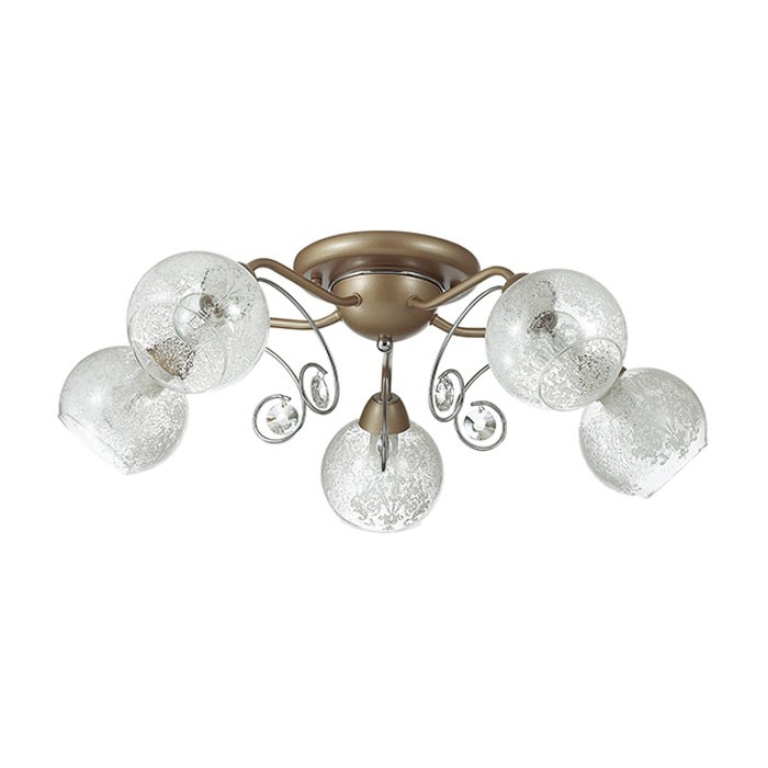 Потолочная люстра 3270/5C серии Razerra оформлена в современном стиле. Люстра состоит из стеклянных прозрачных плафонов со стеклянной крошкой и арматуры с интересным сочетанием цветов никеля и хрома. Данная модель украшена небольшими хрусталинками, что доабавляет ей неуловимого шарма Цоколь E14. Мощность 5x60W позволяет освещать территорию площадью до 15 кв. м ровным, приятным светом.