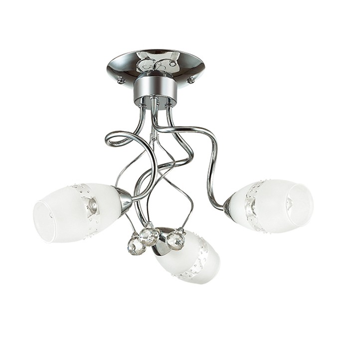 Потолочная люстраRozemunda 3446/3C - легкая, воздушная серия с витыми рожками в цвете "хром", белыми матовыми плафонами с декором. Светильник изящно декорирован хрустальными элементами, прекрасно гармонирующими с обликом светильника. При этом необходимо использовать лампочки с цоколем 3xE14.