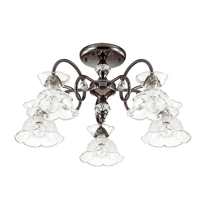 Потолочная люстраSimona 3447/5C выполнена в черненом хроме, для которого примечательны изящные блики на основании. На изящно завитых рожках используются изящные стеклянные плафоны с ажурным орнаментом. Светильник декорирован хрустальными прозрачными вставками и подвесками. При этом необходимо использовать лампочки с цоколем 5xE14.