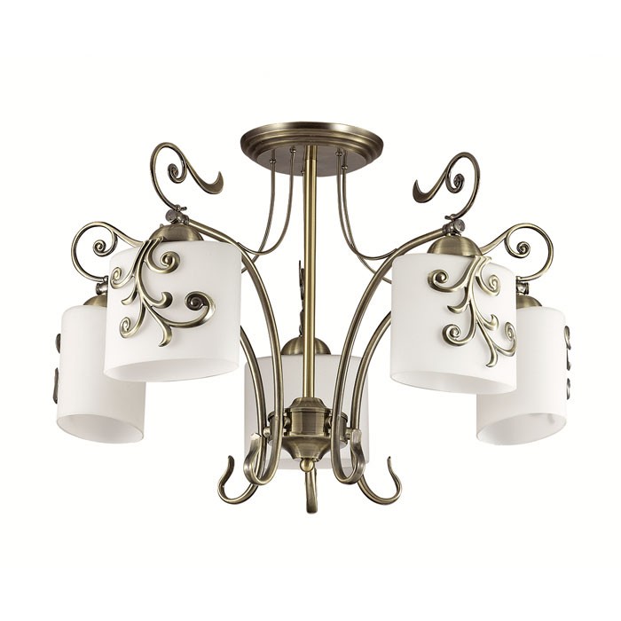 Потолочная люстра 3140/5C серии Susanna оформлена в стиле модерн. Люстра состоит из матовых стеклянных плафонов, украшенных оригинальным металлическим рисунком и бронзовой арматуры, которая дополняет и подчеркивает своими изгибами рисунок на стекле. Именно за счет этого данная модель мгновенно приковывает к себе внимание. Необходимо использовать лампы с цоколем E27. Мощность 5x40W позволяет освещать территорию площадью до 10 кв. м ровным, приятным светом.