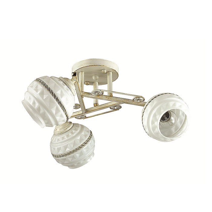 Потолочная люстра 3119/3C серии Tatina оформлена в стиле модерн. Люстра состоит из стеклянных молочных плафонов с объемным рисунком, украшенных декоративной нитью, и арматуры белого с золотой патиной цвета, декорированной металлическими элементами и хрусталем. Скромная и простая на первый взгляд, данная модель обладает неуловимым шармом, который наполнит ваш дом уютом и теплом. Необходимо использовать лампы с цоколем E14. Мощность 3x40W позволяет освещать территорию площадью до 6 кв. м ровным, приятным светом.