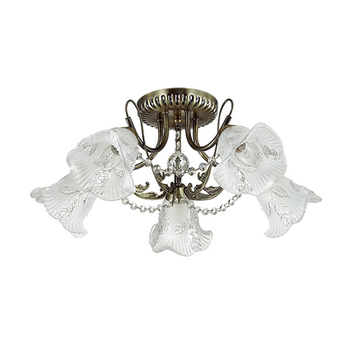 Потолочная люстра 3085/5C серии Verbena оформлена в классическом стиле. Люстра состоит из изящных стеклянных плафонов и бронзовой арматуры, украшенной металлическими элементами и подвескам из хрусталя. Благодаря классической форме, оригинальному плафону и хрустальным подвескам данная модель придется по вкусу абсолютно каждому. Необходимо использовать лампы с цоколем E14. Мощность 5x40W позволяет освещать территорию площадью до 10 кв. м ровным, приятным светом.