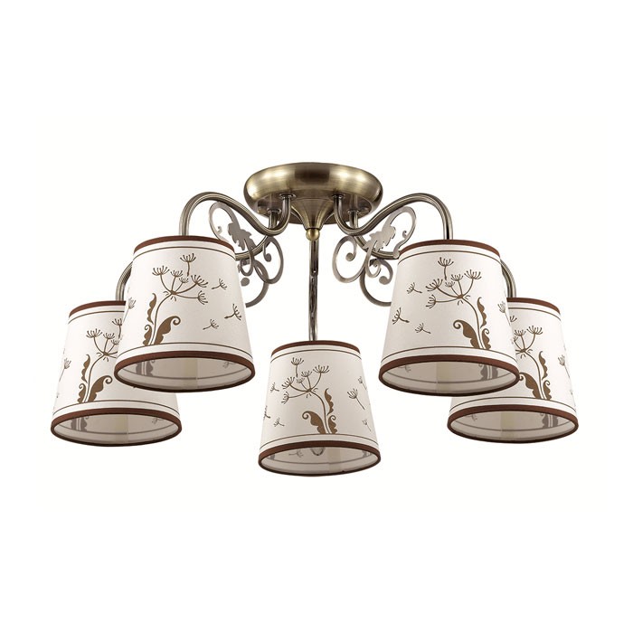 Потолочная люстра 3204/5C серии Zinetta оформлена в стиле прованс. Люстра состоит из тканевых абажуров с веселым принтом и бронзовой арматуры с ажурными декоративными элементами. С данной моделью в доме всегда будет хорошее настроение. Необходимо использовать лампочки с цоколем E14. Мощность 5x40W позволяет освещать территорию площадью до 10 кв. м ровным, приятным светом.