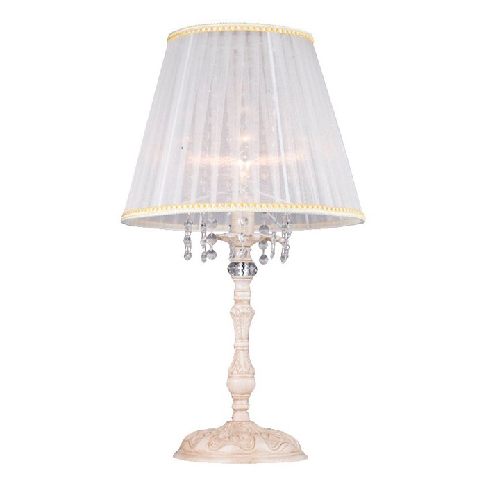 Настольная лампаARM020-11-W относится к серии Omela, коллекции Elegant, дизайн которой исполнен в стиле арт-деко. Арматура из металла цвета «кремовое золото». Восьмиугольные подвески из хрусталя высшего класса. Абажур из органзы.