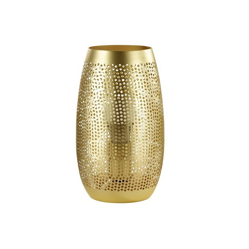 Настольная лампаH448-01-G относится к серии Nerida, коллекции House, дизайн которой исполнен в восточном стиле. Каркас из металла цвета латунь. Особенностью дизайна светильника, выполненного в форме золотой вазы являются небольшими отверстиями по всей поверхности.