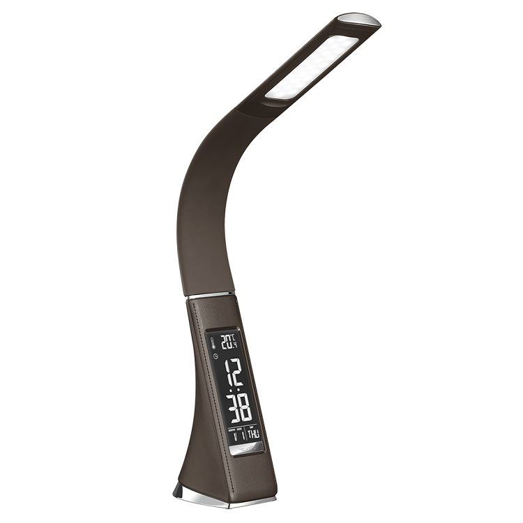 Светильник оснащен LED-дисплеем высокой четкости, так что вы всегда будете осведомлены о времени, дате и температуре окружающего воздуха. Светильник может питаться от USB-порта любого компьютера или от сети. Надёжно и удобно.