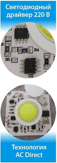 Изготовить столь изящный и ультратонкий светильник позволяет компактная схема питания на основе микросхем. Отсутствие в схеме электрического конденсатора значительно увеличивает срок службы драйвера. Светодиоды и микросхема питания AC Direct размещены на одной печатной плате, поверх которой установлена стеклянная линза для вторичной оптики. Силиконовая прокладка под линзой обеспечивает герметичность светодиодного модуля прожектора по IP65. Линза из качественного боросиликатного стекла устойчива к ультрафиолетовому излучению и нагреву, имеет высокий коэффициент пропускания света и не мутнеет со временем, в отличие от поликарбоната.