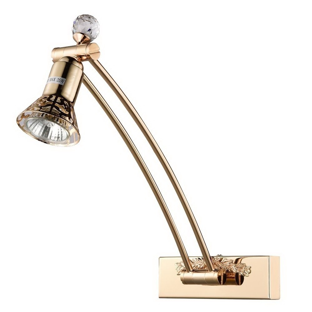 Подсветка для картинPIC123-01-G относится к серии Bronzino, коллекции Picture, дизайн которой исполнен в стиле классика. Металлический каркас изделия выполнен в золотом цвете. Конструкция светильника украшена большим хрустальным шаром с искусной огранкой, а также декоративным элементом из металла.