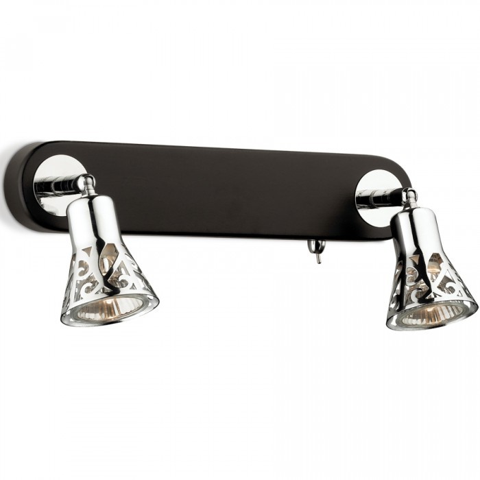 Изготовленный из проверенных материалов (каркас выполнен из металла и дерева, а плафон – из металла), данный спот прослужит вам не один год, радуя бесперебойной работой. Помимо прочих достоинств, светильник обладает прекрасной функциональностью. Используемые лампочки с цоколем 2хGU10 позволяют освещать пространство площадью до 6 кв.м, при этом их общая мощность составляет 100 Вт.
