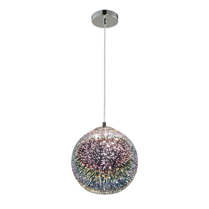 Fametto Galassia DLC-G431-1008 Chrome - декоративный подвесной серии "Galassia". Без лампы. Материал стекло, цвет хром. Плафон светильника выполнен из стекла с голографическим 3D эффектом. Идеально сочетаются с любыми интерьерами. Светильники данной серии отлично подойдут для использования в жилых помещениях, ресторанах и барах.