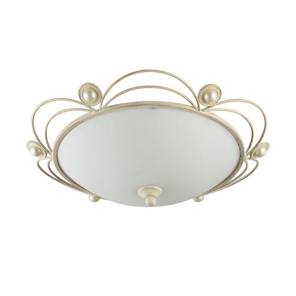 Потолочный светильник FR700-02-W оформлен в стиле классика и легко сочетается с другими элементами обстановки. Симпатичный стеклянный плафон белого цвета прекрасно смотрится с металлической арматурой цвета белого золота. Конструкция декорирована жемчужинами. Этот светильник способен создавать освещенную зону площадью в 6 кв. м, поскольку обладает мощностью в 120 Вт. Цоколь лампочек – 2xE27.