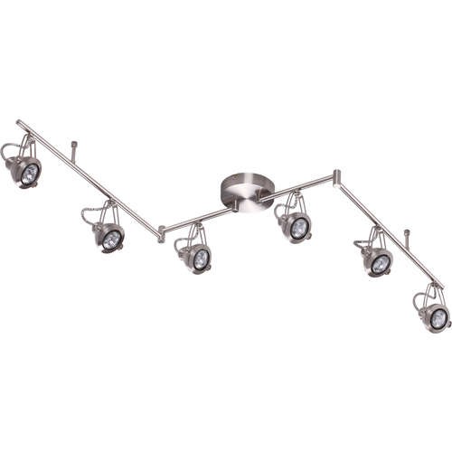Светильник потолочный Odeon Light Breta 3807/6C - готовая трековая система в стиле хай-текt. Основой трека являются три поворотные штанги с шестью светильниками под заменяемую лампу. Длина трека 1744 мм, высота всего 229 мм, общей мощностью 300w, но этого достаточно для освещения комнаты до 15м2. Светильники серии Breta выполнены в необычной стилистике, в виде небольших поворотных прожекторов. Каждый плафон светильника оснащен шарнирным механизмом, что позволяет направлять их в любую сторону в независимости друг от друга. Гибкая шина позволяет использовать светильник в помещениях любой геометрии, а также перемещать и компоновать плафоны. Гибкие треки можно разрезать в любом месте и соединять их коннекторами между собой.