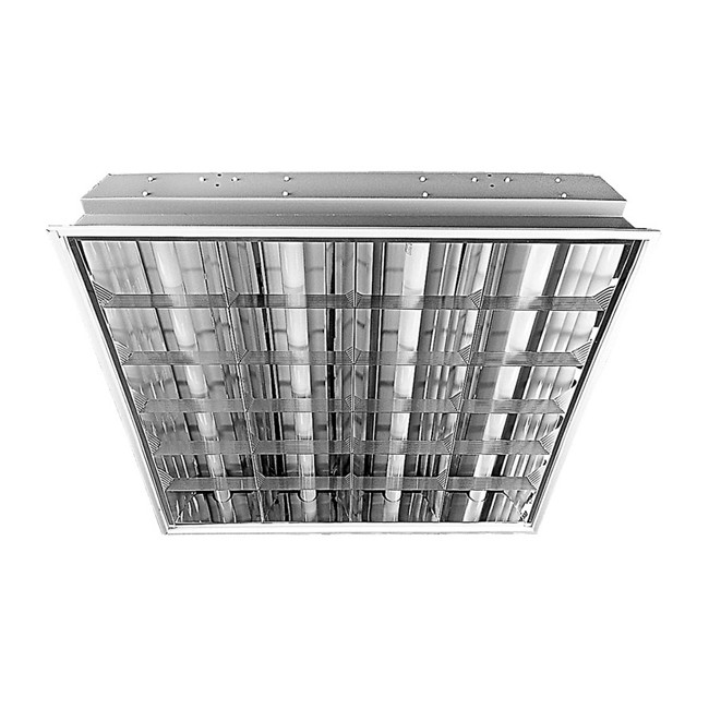 Светильники 4x18 с зеркальным растром со стартером ЛВО-13-4х18-781 595х595 предназначены для общего освещения общественных зданий и других аналогичных помещений. Допускается применение светильников для освещения жилых помещений. Светильники монтируются в подвесные потолки, выполненные из любого строительного материала. Отражатель крепится к корпусу светильника при помощи металлических пружин.