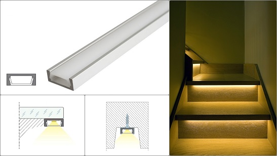 Накладной профиль для светодиодной ленты, как правило, используется для внутреннего освещения, в частности для освещения лестниц, шкафов, окон и потолков.