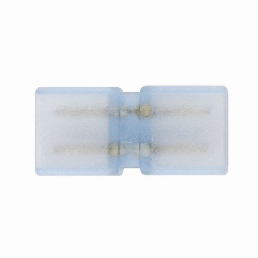 Соединитель представляет собой миниатюрное устройство с сечением 10x7 мм, оснащенное двумя контактами. Он предназначен для соединения двух отрезков светодиодной ленты 220 В 3528. Данный коннектор имеет жесткое соединение и используется для визуально незаметного соединения двух отрезков ленты на прямых участках. Надёжность соединения обеспечена качественными прочными контактами с высокой электрической проводимостью. При монтаже необходимо соблюдать полярность, то есть контактные площадки ленты должны совпасть с соответствующими контактами соединителя.