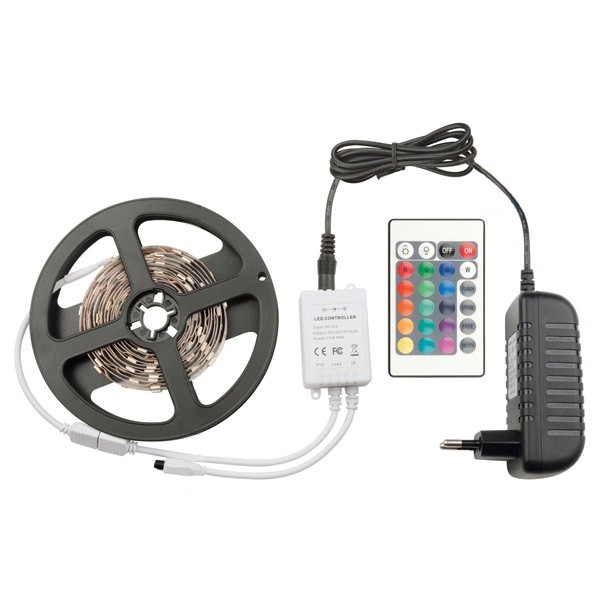 Светодиодная лента Volpe ULS-Q211 5050-30LED/IP20/RGB выполнена на гибкой печатной плате белого цвета на базе светодиодов 5050. Поставляется в виде катушки 3 м, в комплекте с адаптером питания 24 Вт и контроллером с пультом.