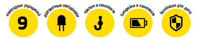 Набор уже укомплектован всеми необходимыми батарейками и крепежами для гирлянд. Подари новогоднее настроение себе и близким, украсив свою кухню всего за 10 минут!