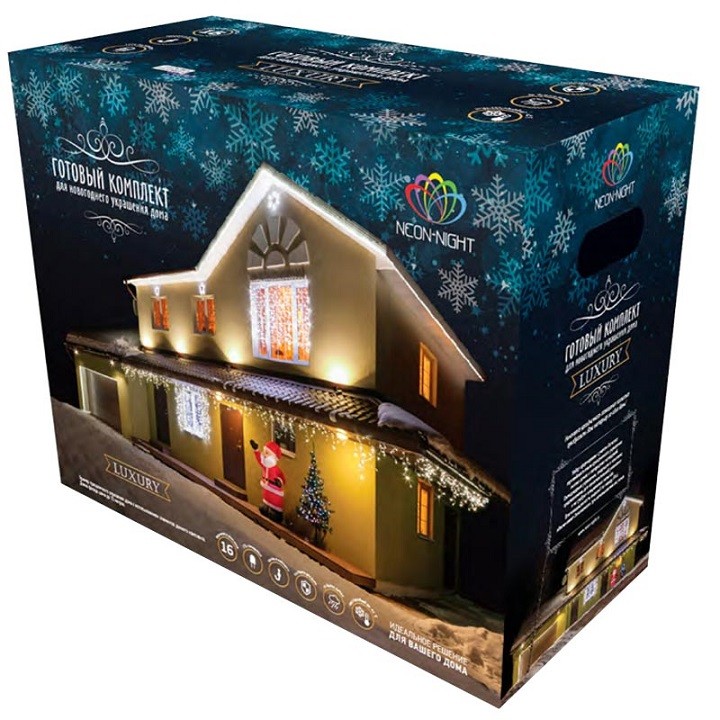 Чтобы придать своему дому индивидуальность и сделать его празднично-красивым не только внутри, но и снаружи, стоит подумать о его новогоднем декорировании. В этом Вам помогут готовые решения, которые включают все самое необходимое для создания настоящей сказки. Продукция разработана с учетом многолетнего опыта украшений, как частных, так и городских объектов в условиях суровой российской зимы, поэтому спокойно выдерживает перепады температур до -40 градусов!