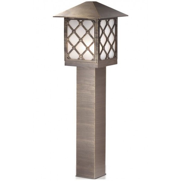 Плафон светильника выполнен в виде домика и расположен на широкой квадратной опоре. Он одинаково успешно может использоваться как для освещения садовых дорожек, так и для лестниц, ведущих в дом.