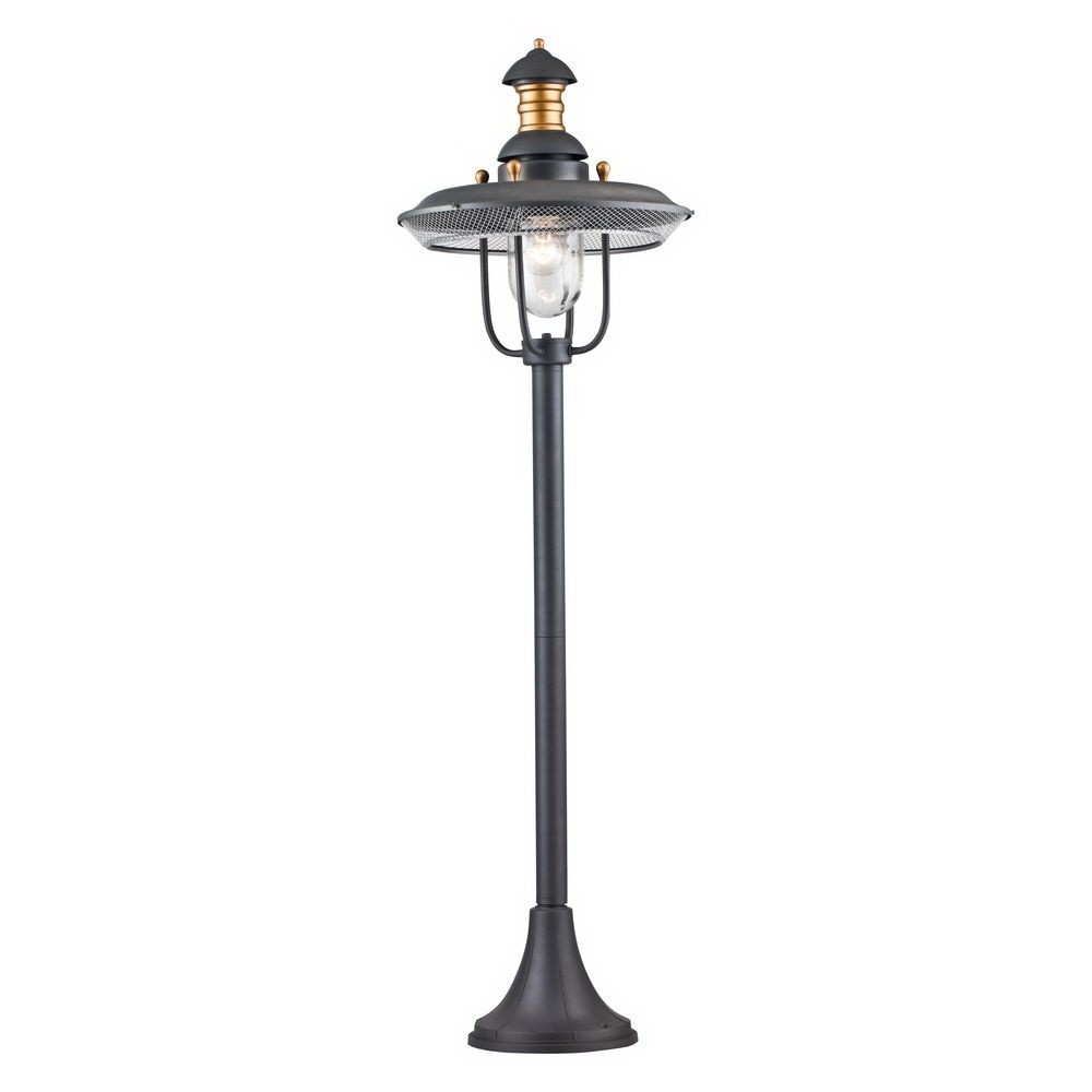 Светильник наземный уличный S105-120-61-G относится к серии Magnificent Mile, коллекции Street, дизайн которой исполнен в стиле лофт. Корпус из металла, устойчивый к перепадам температуры. Покрытие черного цвета. Плафон из стекла украшен декоративным решетом и дугами.