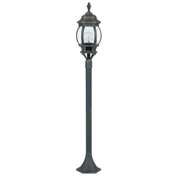 Светильники Duwi Praha напомнят об узких улочках старых европейских городов. Чёрный корпус с золотым напылением сделан из алюминиевого сплава и дополнен изящными декоративными элементами. Стёкла фонаря выпуклые и прозрачные.