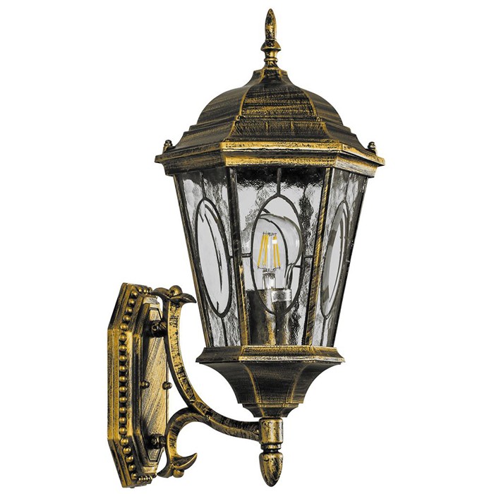Светильник изготовлен из силумина — сплава алюминия с кремнием, устойчив к неблагоприятным внешним воздействиям, и обладает высокой степенью защиты от внешней среды. В светильнике установлен патрон для лампы с цоколем E27.