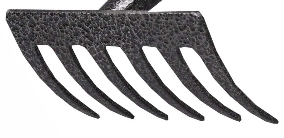 Рабочая часть изготовлена из углеродистой стали и имеет качественную закалку. Ручка инструмента изготовлена из древесины ясеня высшего сорта, прочна и удобна в работе. Имеют 6 прямых зубцов.