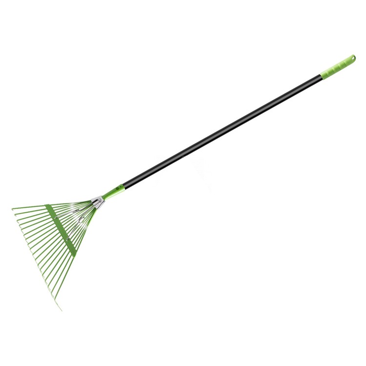 Веерные грабли с компенсатором Центроинструмент 0502-Ч выполнены из пружинной стали. Ручка инструмента изготовлена из алюминиевого сплава. Противоскользящее покрытие ручки грабель обеспечивает удобство работы. Грабли садовые 0502-Ч оснащены компенсатором для придания дополнительной жесткости.