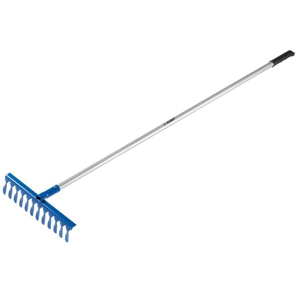 Рабочая часть изготовлена из углеродистой стали и имеет качественную закалку. Имеют прочный алюминиевый черенок с эргономичной пластиковой рукояткой, 12 прочных зубцов. Малый вес значительно снижает утомляемость при выполнении работ.