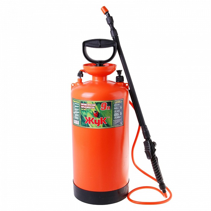 Опрыскиватель Жук ОП-209 создает мелко-капельное распыление и применяется для подкормки, полива и химической защиты растений от вредителей и болезней. Используется для опрыскивания кустарников, картофеля, деревьев средней высоты, а также для мытья стен, стекол и других работ. Тип распыла регулируется от струи до тумана.