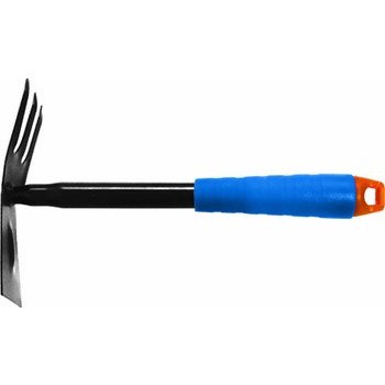 Мотыга FIT мини 265 мм 77062 используется для разрыхления и разравнивания почвы. Также применяется для прополки грядок и клумб. Зубья инструмента изготовлены из углеродистой стали с напылением из ПВХ, что обеспечивает продолжительный срок службы. Рукоятка имеет резиновую накладку и отверстие для подвешивания.