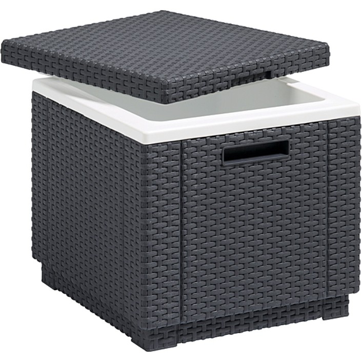 Cтол-холодильник Keter Ice Cube имеет современный дизайн, и с закрытой крышкой может использоваться не только как стол, но и как пуфик. Главная же особенность столика в том, что в нем есть емкость для хранения, куда можно поместить специальный пакетик с сухим льдом, который будет поддерживать отрицательную температуру в емкости и, соответственно, станет незаменимым помощником в жару.