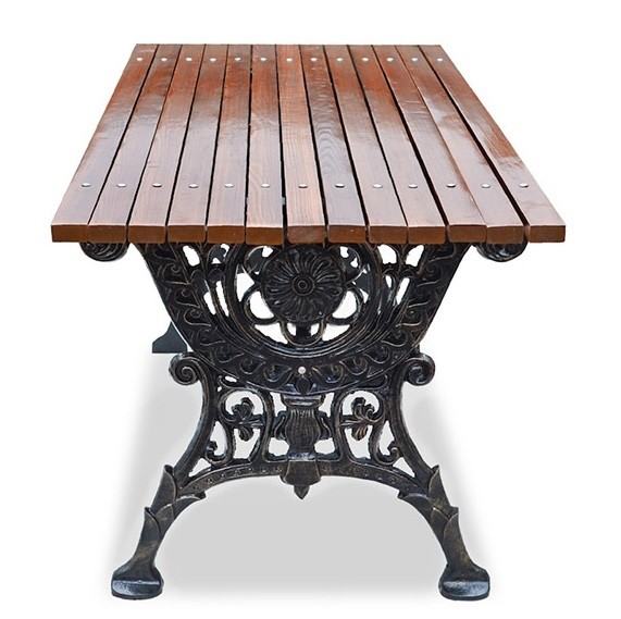 Стол для дачи и сада «Ажурный» - это волшебное сочетание красивого чугунного литья и столешницы из древесины хвойных пород. Такой стол не просто дополнит, а украсит территорию вашего участка, будь то дача или загородное поместье. Дополнительно, стол может быть укомплектован чугунными скамейками или креслами, что безусловно превратит ваше место в незабываемый отдых.