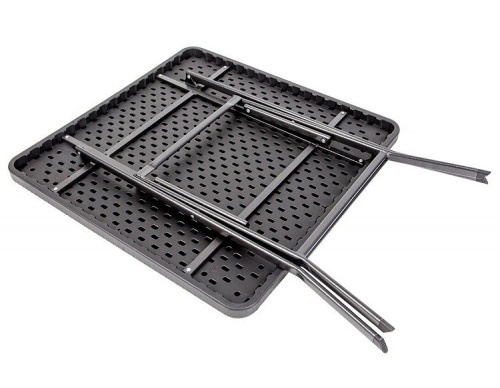 Прекрасно выполнена внутренняя поверхность стола. Пластиковая защита ножек исключает царапины при использовании внутри помещения. Водостойкий пластик столешницы и стальная рама с антикоррозийным покрытием позволяют оставлять стол на открытом воздухе в течение всего сезона. При хранении стол плоско складывается и не занимает много места.