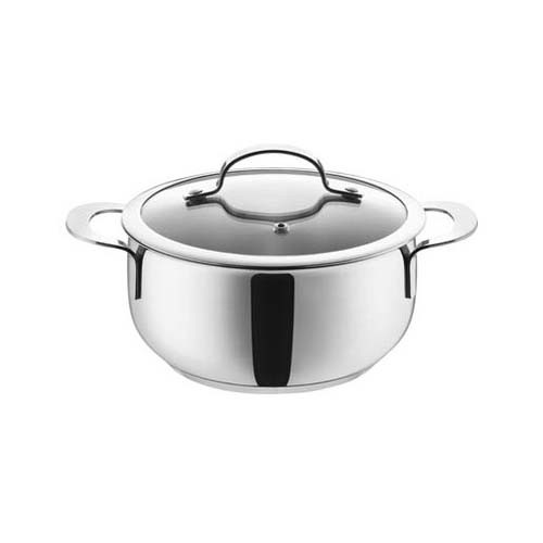 • имеет трехслойное дно 6mm, которое состоит из слоя нержавеющей стали 18/10, алюминиевой прослойки и внутреннего слоя нержавеющей стали 18/10;