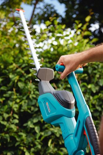 Благодаря большому расстоянию между зубцами даже толстые ветки не станут для Вас проблемой. Электрические ножницы для живой изгороди оснащены мощным высокопроизводительным двигателем для энергичной и продолжительной обрезки в один прием - без застреваний и остановок. Gardena заботится о Вашей безопасности. Щиток на конце лезвия оберегает пользователя от отдачи при обрезке близко к поверхности земли и защищает лезвие от повреждений. Механизм разгрузки натяжения кабеля предотвращает случайное отсоединение удлинителя.