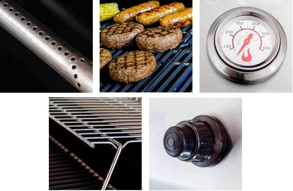 Литая решетка, размером 61х44 см, покрыта фарфоровой эмалью. Она обеспечивает высочайшее качество приготовления пищи. Гриль также имеет дополнительную решетку для подогрева размером 57х20 см. Встроенный в крышку термометр позволит контролировать температуру приготовления.