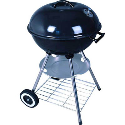 Гриль по форме напоминает сферу, которая установлена на четыре устойчивые ножки. Изготовлено изделие из прочнейшей стали, покрытой сверху жаростойкой эмалью черного цвета. Решетка выполнена из жаростойкого металла и не поддается со временем деформации. Гриль использует в работе древесный уголь. Благодаря этому виду топлива все блюда получаются очень вкусными и с приятным ароматом дымка.