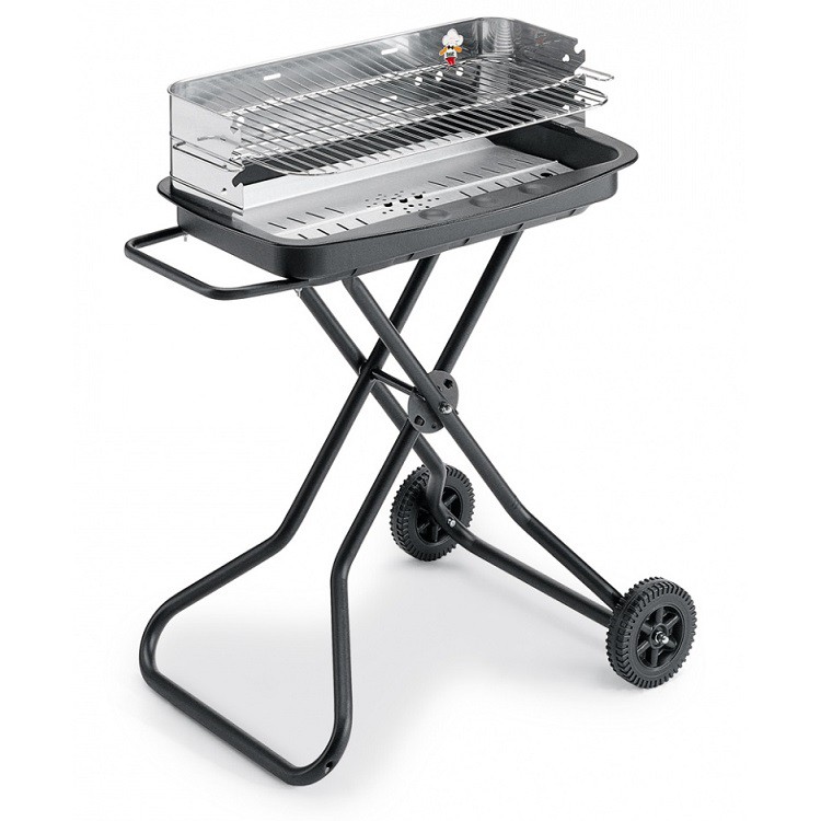 Гриль имеет прямоугольную форму и оборудован широкой решеткой размером 45х65 см. Решетку можно регулировать по высоте. Возможность выбора расстояния между жаром и продуктами намного облегчит процесс приготовления. Высота гриля 90 см оптимальна для удобной эксплуатации.
