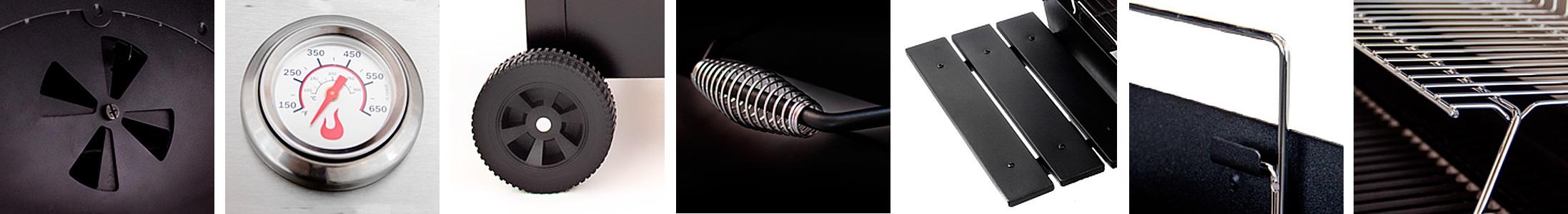 Просторная основная решетка, размером 62х43 см, покрыта фарфоровой эмалью. Она обеспечивает высочайшее качество приготовления пищи. Гриль также оснащен дополнительной хромированной решеткой для подогрева размером 60х20 см. Встроенный в крышку термометр позволит контролировать температуру приготовления.