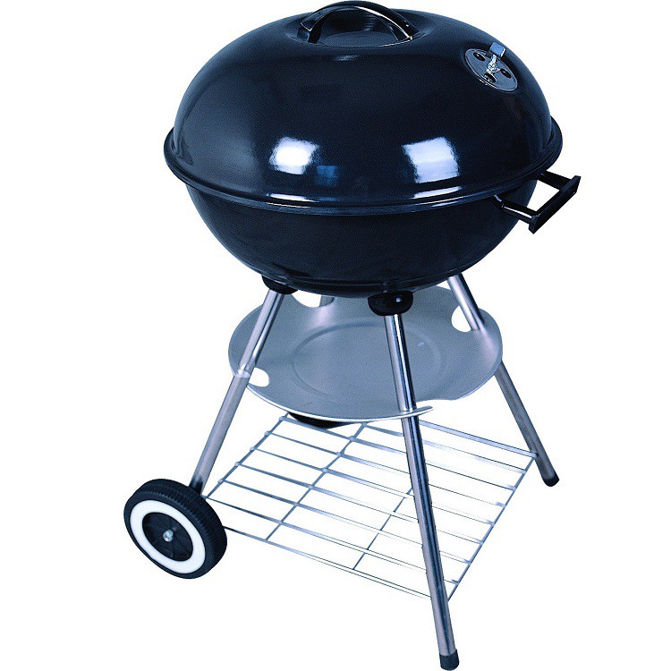 Гриль по форме напоминает сферу, которая установлена на четыре устойчивые ножки. Изготовлено изделие из прочнейшей стали, покрытой сверху жаростойкой эмалью черного цвета. Решетка выполнена из жаростойкого металла и не поддается со временем деформации. Гриль использует в работе древесный уголь. Благодаря этому виду топлива все блюда получаются очень вкусными и с приятным ароматом дымка.