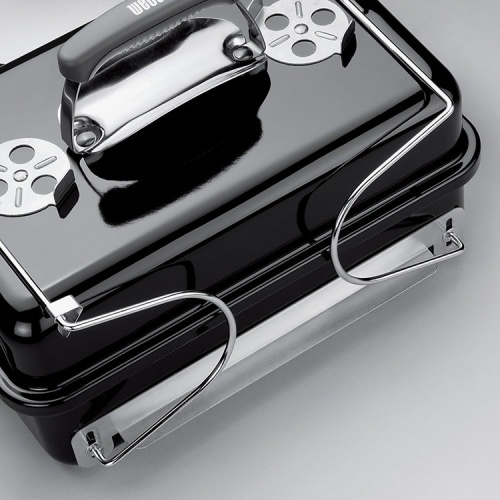 В основу гриля Go-Anywhere с целью получения большей рабочей поверхности была положена необычайная конструкция, позволяющая готовить прямым и косвенным методом как большие бифштексы, гамбургеры и птицу, так и маленькие кусочки продукта.