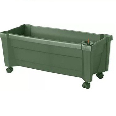 Ящик для растений Калипсо зеленого цвета от компании KHW отличный способ украшения загородного участка. Модель прямоугольной формы на практичных колесиках, ее удобно передвигать в любую точку сада. Также есть система орошения объемом на 8 литров. Достаточно просто добавить воды и можно не переживать, что цветы засохнут до вашего следующего приезда. Объем клумбы составляет 42 л.