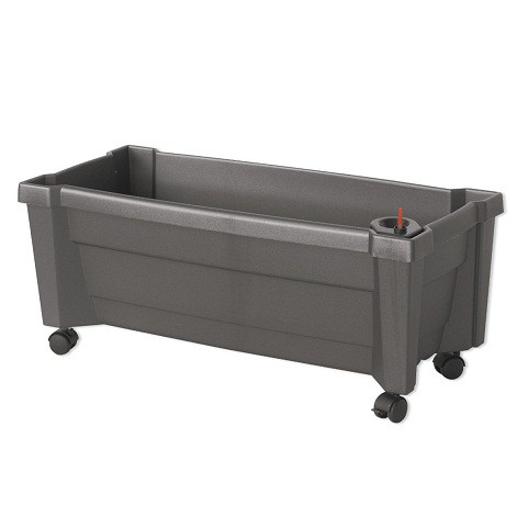Ящик для растений Калипсо антрацитового цвета от компании KHW отличный способ украшения загородного участка. Модель прямоугольной формы на практичных колесиках, ее удобно передвигать в любую точку сада. Также есть система орошения объемом на 8 литров. Достаточно просто добавить воды и можно не переживать, что цветы засохнут до вашего следующего приезда. Объем клумбы составляет 42 л.